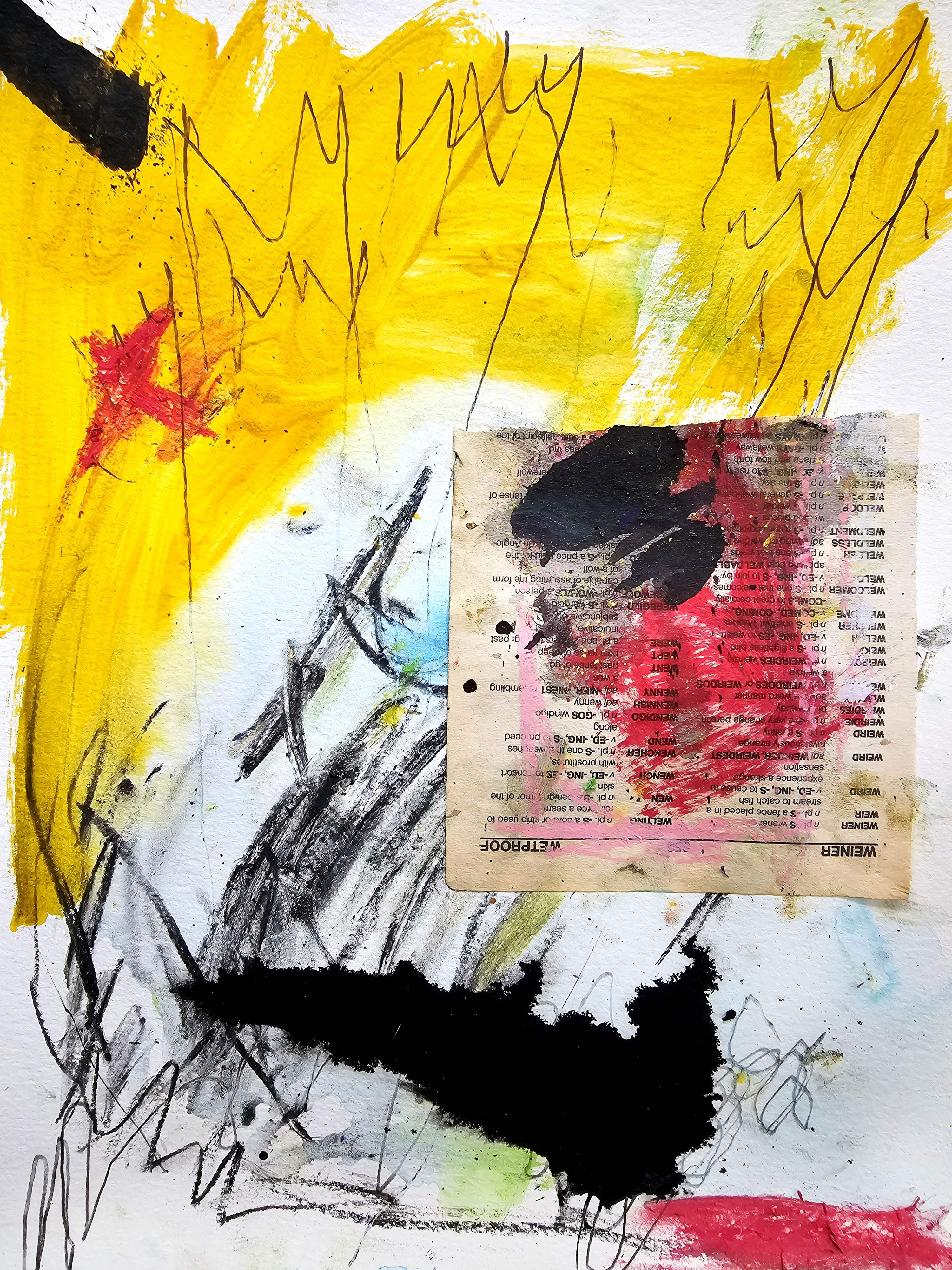 Using the word bank developed in Section 1, you'll start to explore and experiment with mark-making and mixed media materials.