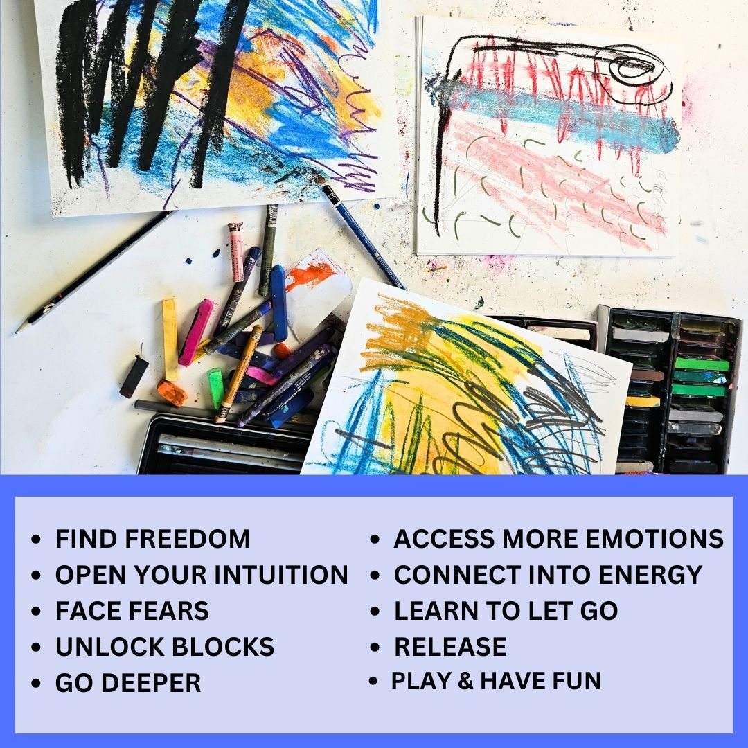 Unlock a deeper conversation and connection to the intuitive self through expressive mark making and intuitive painting.